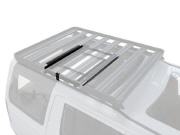 Für die Montage SEITLICH am Dachträger benötigt der Tisch eine 5-Leisten-Aussparung (der Raum zwischen den Befestigungsfüßen). Alle Front Runner Dachträger Kits mit Fußrelings haben eine Aussparung, die für alle Tischbreiten geeignet ist.