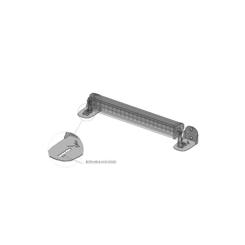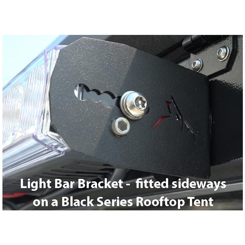 Gefertigt ist die Halterung aus Edelstahl in schwarzer Pulverbeschichtung. Sie verfügt über vorgebohrte Schlitze für M8- oder M10-Schrauben zur Montage der Lampen. Die Light Bar-Halterung lässt sich einfach an der Seite des Alpha-Dachzelts in den beiden Nuten ohne Bohrungen befestigen.