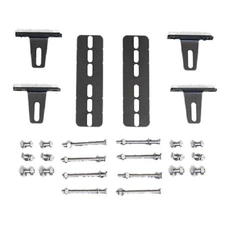 Diese Verbindungshalterungen dienen zur Befestigung der Dachzelte von The Bush Company an den Dachträgern (Querträger). Für die sichere Befestigung des Dachzeltes empfehlen wir mindestens vier Lastenträger, für die Sie insgesamt 8 Halterungen (4 Sätze zu je 2) benötigen. Die Halterungen bestehen aus 3 mm dickem Edelstahl und sind schwarz pulverbeschichtet. In jedem Paket befinden sich 2 Halterungssätze sowie Edelstahlschrauben, Unterlegscheiben und Nylock-Muttern, die zur Befestigung erforderlich sind.