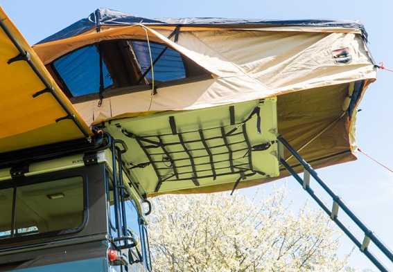 Zahlreiche Staumöglichkeiten im und unter dem Expedition Dachzelt.