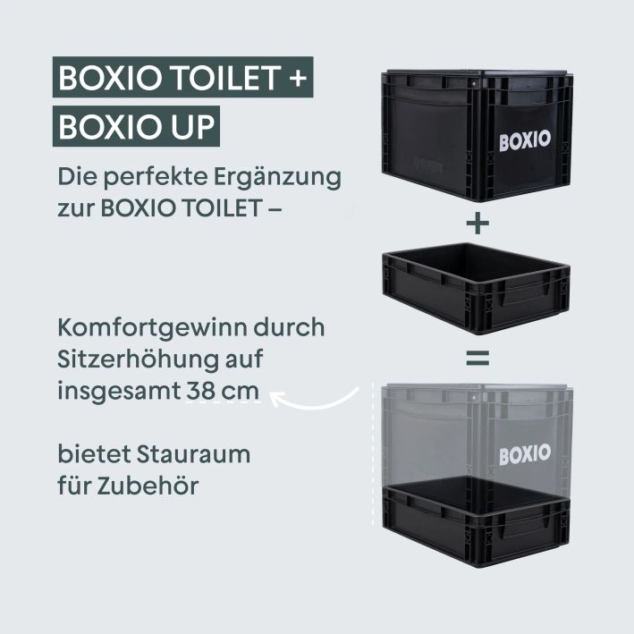 Mit dem TOILET UP erhalten Sie eine Sitzerhöhung, mit der das Geschäft noch komfortabler wird. Es ist die perfekte Ergänzung zur Toilettenbox und erhöht die Sitzhöhe auf insgesamt 38cm.