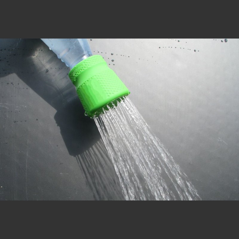 Mit diesem Silikonduschkopf haben Sie eine handelsübliche Sprudelflasche im Handumdrehen zu einer Flaschen - Dusche umgebaut. Der Duschkopf passt auf die allermeisten Kunststofflaschen, die ein Gewinde von rund 25 bis 30mm Durchmesser haben. Das Gewinde selbst spielt dabei keine Rolle, der Duschkopf sitzt immer dicht auf.