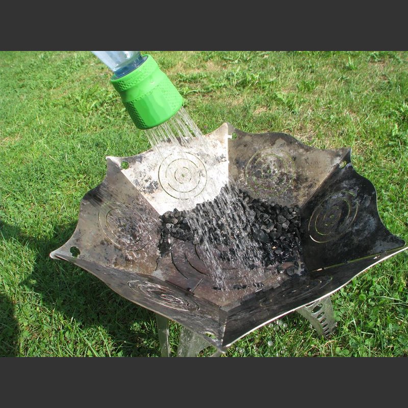 Tipp: mit einer z.B. an einem Ast aufgehängten Flasche stoppt der Wasserfluss, wenn man die Flasche nicht schüttelt. Dann z.B. einseifen oder Wasser sparen. Umgekehrt kann man durch leichtes Rütteln den Duschvorgang starten.