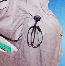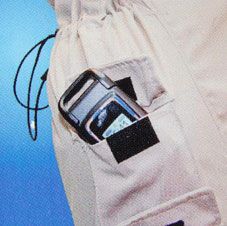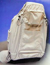 Der Sitzbezug hat sowohl an den Seiten als auch an der Rück- und Vorderseite jede Menge unterschiedlich große Utensilien-Taschen ("storebags"), teils mit Reißverschlüssen, teils mit Klettbändern, in denen vom Handy bis hin zu Landkarten alle möglichen Utensilien verstaut werden können.