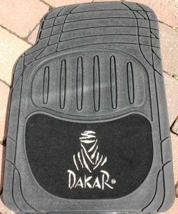 Diese strapazierfähige Universal-Fußmatte aus Gummi mit einem schwarzen Einsatz und gesticktem "Dakar"-Logo passt sich optimal dem Fußraum an und lässt sich auch leicht schneiden.