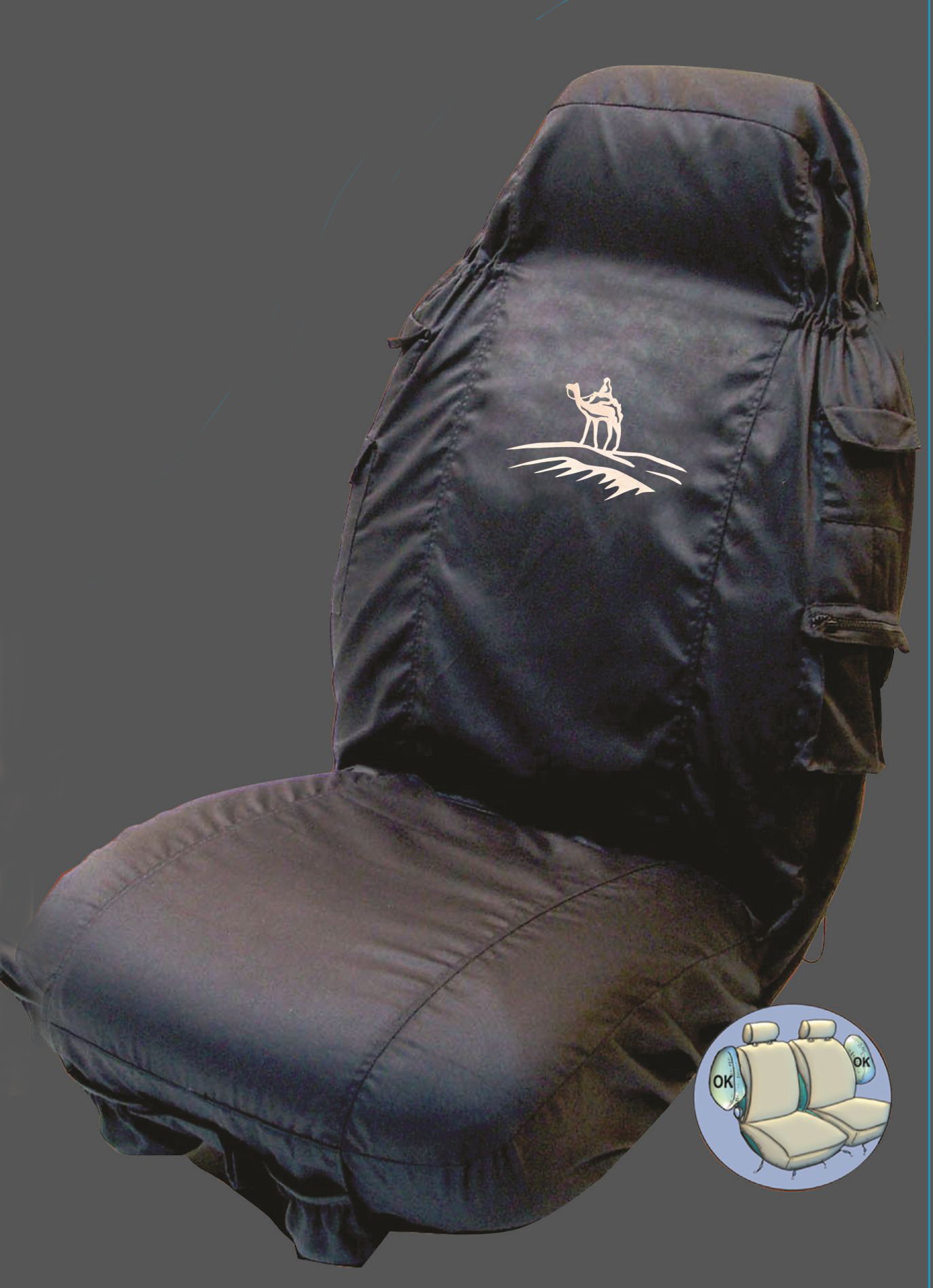 "1000-Taschen-Sitzbezug" Sitzbezug mit eingesticktem Tuareg-Logo - Safari -Stil mit vielen Taschen. Universal-Größe. Einfach zu montieren ! Diese Sitzbezüge haben wir bereits seit 2007 im Programm. Sie haben sich seitdem...
